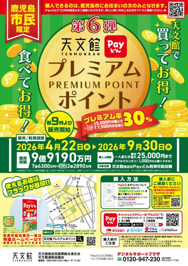 天文館プレミアムポイントは2026年4月22日(水)AM9:00より販売開始!